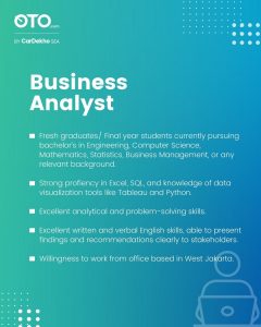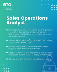 OTO by CarDekho SEA is looking for Business Analyst and Sales Operations Analyst roles.