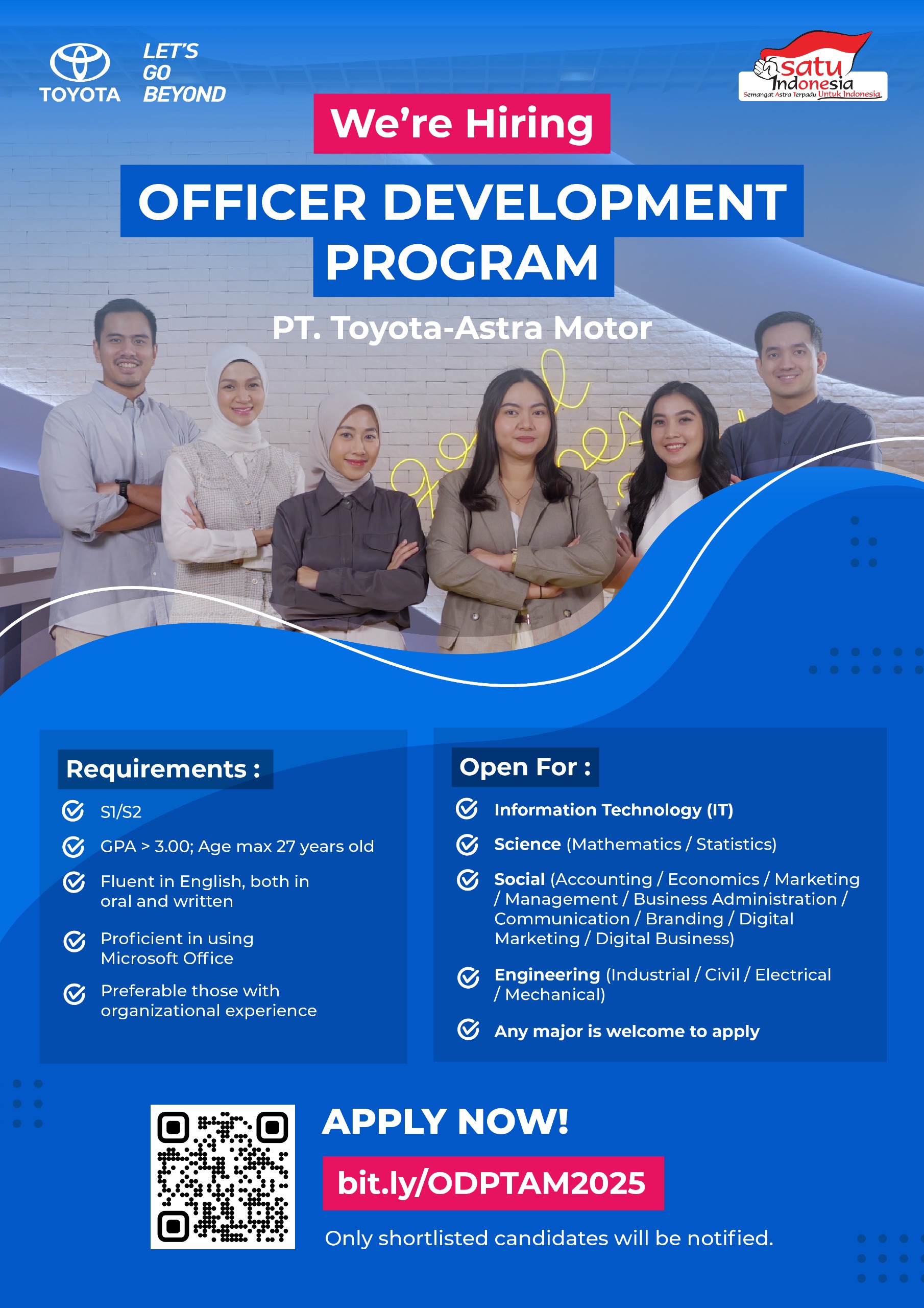 Are you interested in accelerating your career with Astra and passionate to be Audit & Risk professionals? PT Astra International Tbk will conduct Campus Hiring Regional Jabodetabek for Audit & Risk Development Program Batch 15! If you are a fresh graduate with a maximum of 2 years of work experience, and from any university in...Read More