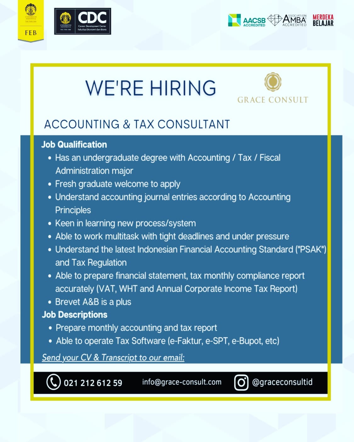 Hi sobat CDC FEB UI Come on join with us Calling for people passionate in building business sustainably and responsibly! are you willing to be an intern to build business sustainably? are you committed to make sure your works become a pathway for others to grow? join Grace Consult; we seek great people building great...Read More